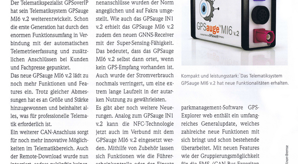 Der Telematikspezialist GPSoverIP hat sein Telematiksystem GPSauge MI6 v.2 weiterentwickelt.