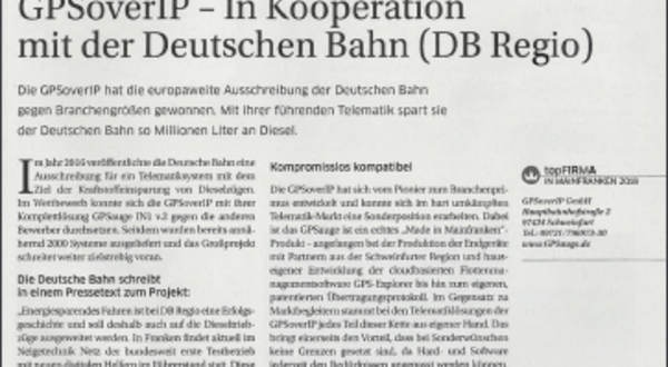 Die GPSoverlP hat die europaweite Ausschreibung der Deutschen Bahn gegen Branchengrößen gewonnen. Mit ihrer führenden Telematik spart sie der Deutschen Bahn so Millionen Liter an Diesel.